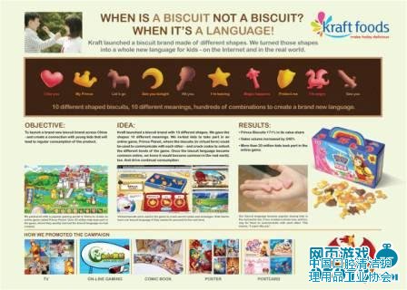 这是纳爱斯第一次尝试游戏植入营销,而合作方奥比岛在IGA(In Game Advertisement)方面却可谓是颇有经验。在今年6月份,法国戛纳国际广告节上摘得铜狮奖的营销案例“2010王子开心大冒险——饼干密语”,就是奥比岛为卡夫王子饼干量身打造的IGA案例。这也是中国广告在世界范围所获得的至高荣誉。