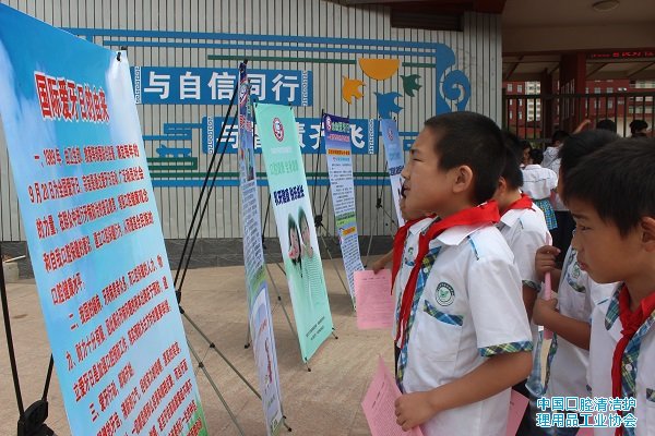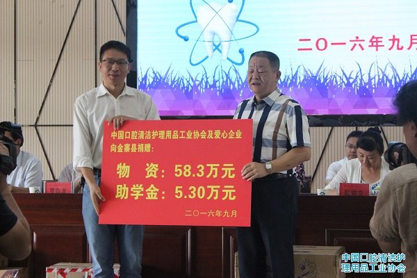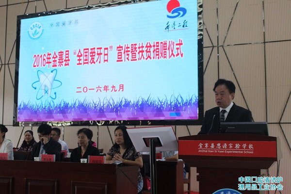 在全国第28个爱牙日里,中国口腔清洁护理用品工业协会在部分会员企业的大力支持下,在我国著名革命老区,安徽省金寨县举办了一次有声有色的公益宣传与扶贫捐赠活动。活动包括口腔健康教育、口腔疾病义诊、口腔护理产品和宣传册捐赠,以及贫困中小学生帮扶等。参加活动的有300多名中小学生和金寨县各中小学校老师代表,以及县政府相关部门负责人。金寨县县委常委、组织部长到会讲话并为协会赠送锦旗。活动取得圆满成功。