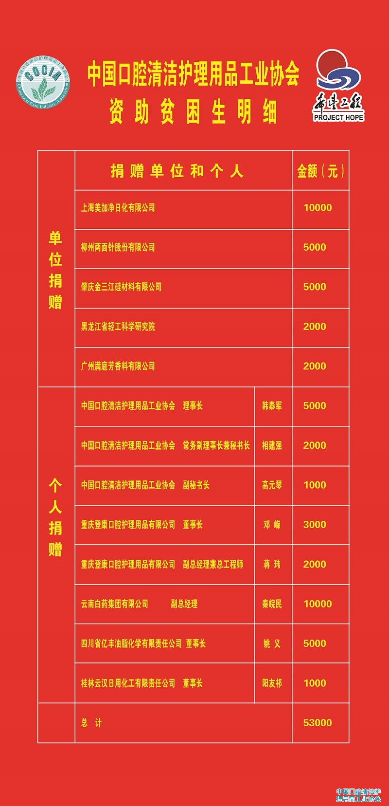 2016年全国爱牙日公益捐赠活动向贫困生捐款明细