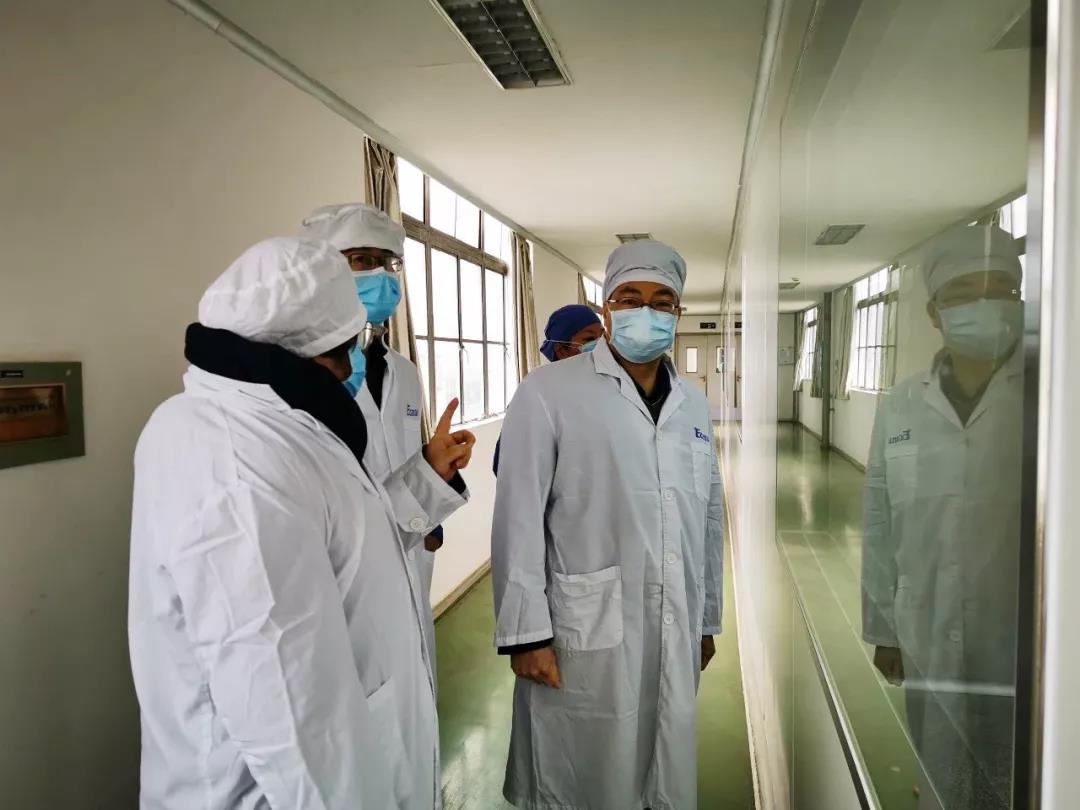 公司副总裁莫善军(右一)到生产车间了解复产情况